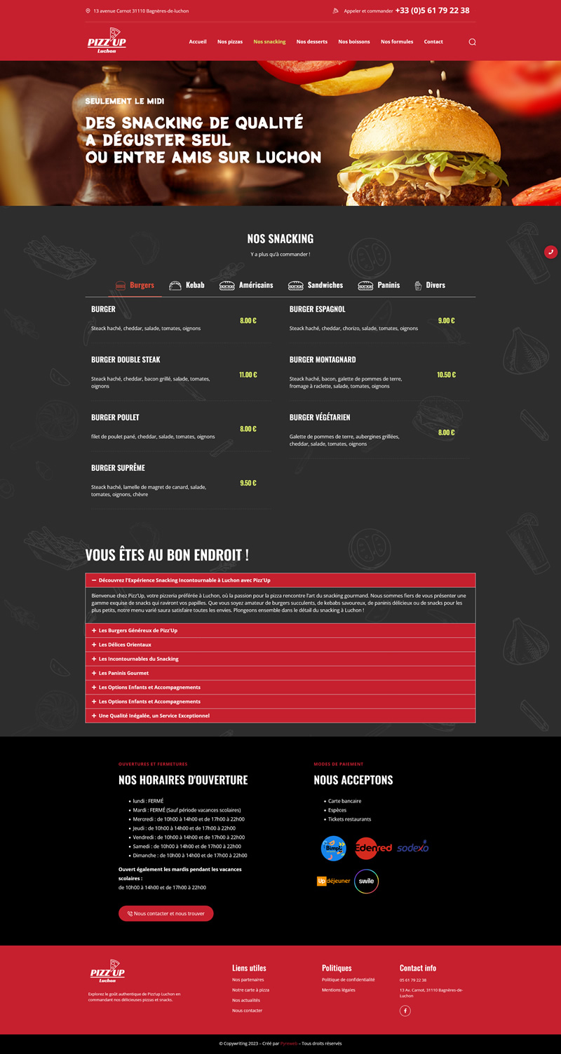 Création et référencement du site vitrine de Pizz'up à Luchon